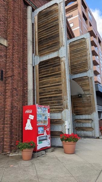 自販機に比べたら巨大な扉の大きさをよく分かる。