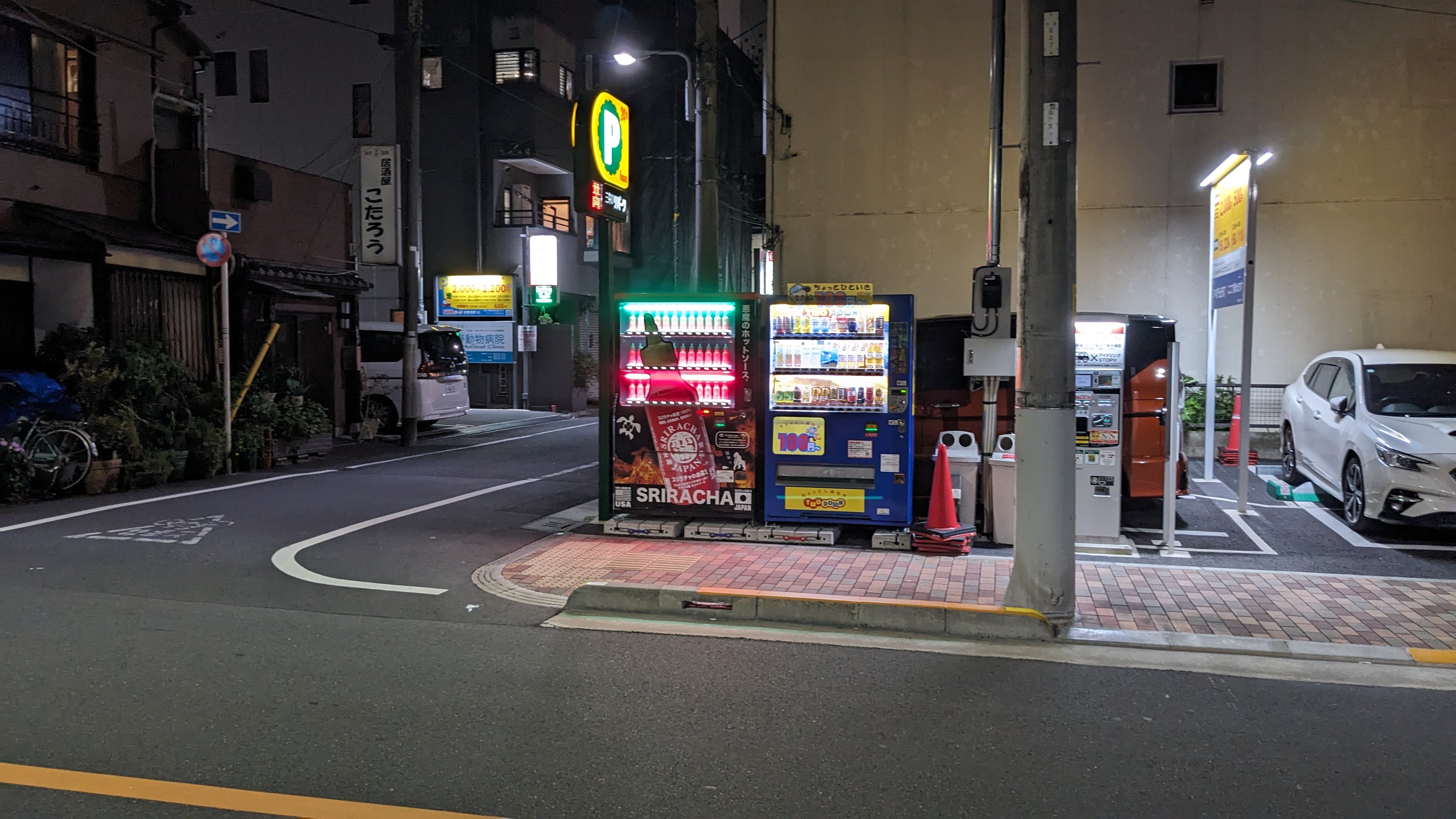 この自販機は有名なシラチャ・ソースだけ売っている。多分このソースはそんなに良くて、買ったら他のものは何もいらないんだ。自販機を近く見ている時は他人が近づいて、コインを入れ始めた。その前に珍しい自販機数台見かけたのに、一度も誰か買うのを見たことなかったから、驚いた。実は私気づかないで、彼は私をおごろうとした。でも、多分、彼が気づかなかったことはこの自販機は普通の自販機じゃなくて、シラチャの自販機だったことだ。シラチャ・ソース一本は700円で、持っているコイン足りないと言っていた。その後ちょっと世間話をして、別れの挨拶した。数分後でようやくおごろうとしたことに気づいた。他人がそんな普通におごろうとしたからいい気持ちだったけど、空気を読めなかったから恥ずかしかった。きちんと感謝した方がよかったのに。