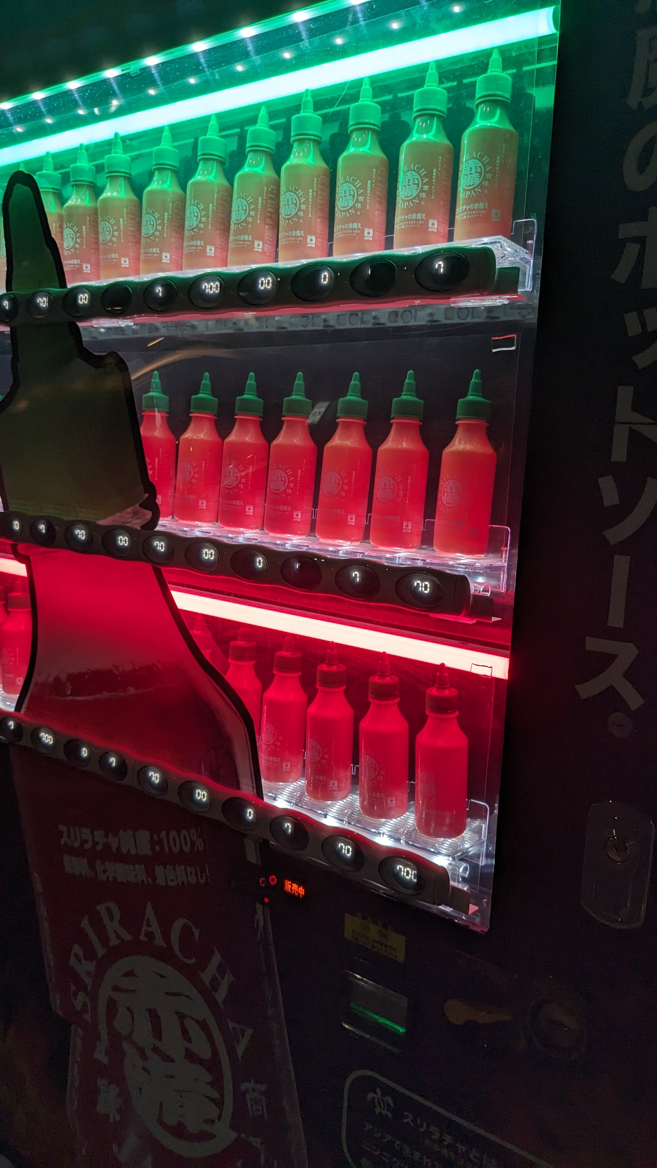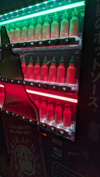 This vending machine sells nothing but the famous Sriracha sauce. I guess