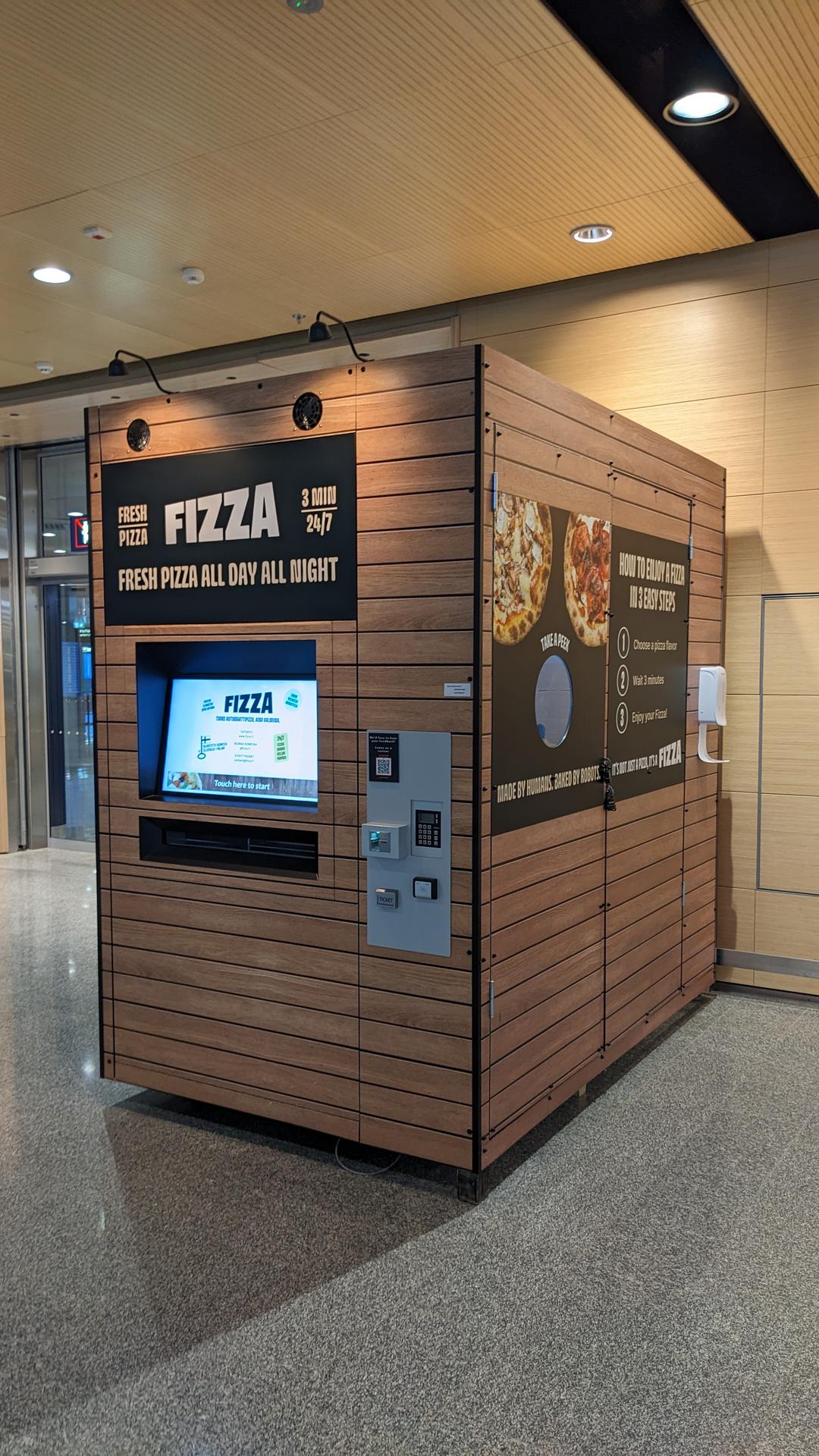 interesting vending machine. The FIZZA machine bakes pizza on the spot so